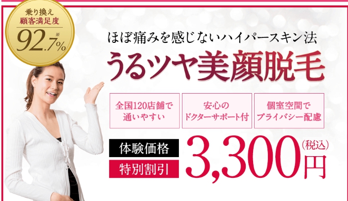 お顔まるごと脱毛がお試し価格で体験可能