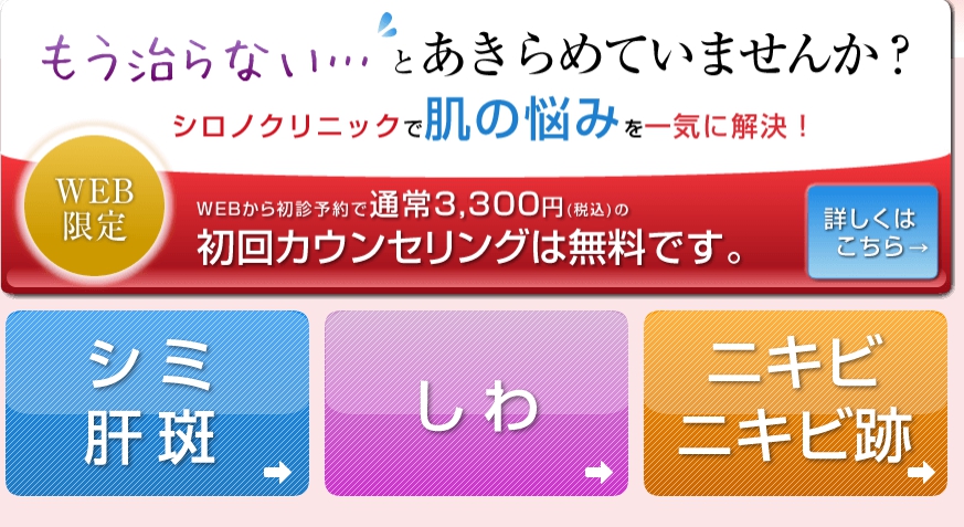 | 商品名 | シロノクリニック 医療美容皮膚科 “理想の肌”を手に入れるレーザー治療専門 |