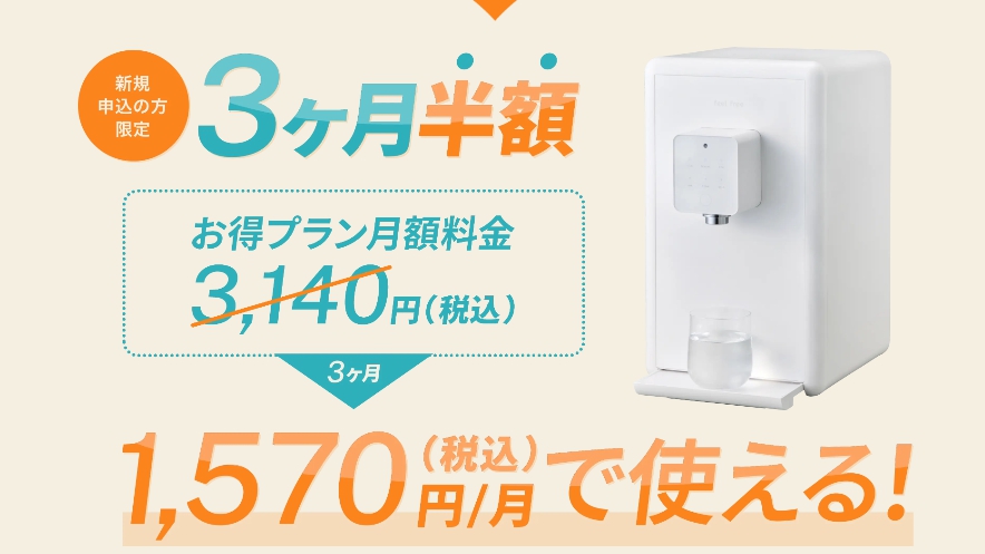 毎月3,140円(税込)でお水が飲み放題。